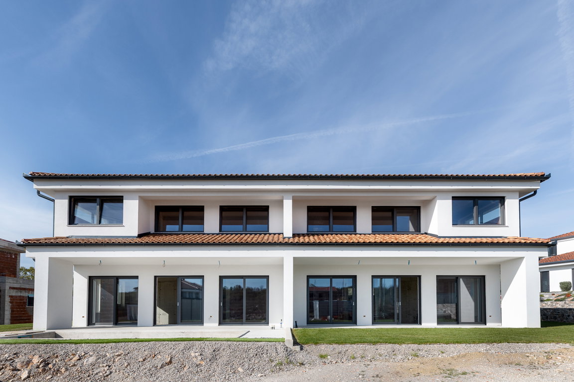 Na mirni, sončni lokaciji v novem naselju sodobnih hiš v Opatjem Selu pri Mirnu vas pričakuje vrhunsko zasnovana stanovanjska enota dvojčka, ki ponuja več kot le dom. Gre za premišljeno novogradnjo v dveh etažah (P+1) na zemljišču velikosti cca. 415 m², ki vas bo navdušila s svojo funkcionalno arhitekturo, kakovostnimi materiali in dovršenimi detajli.