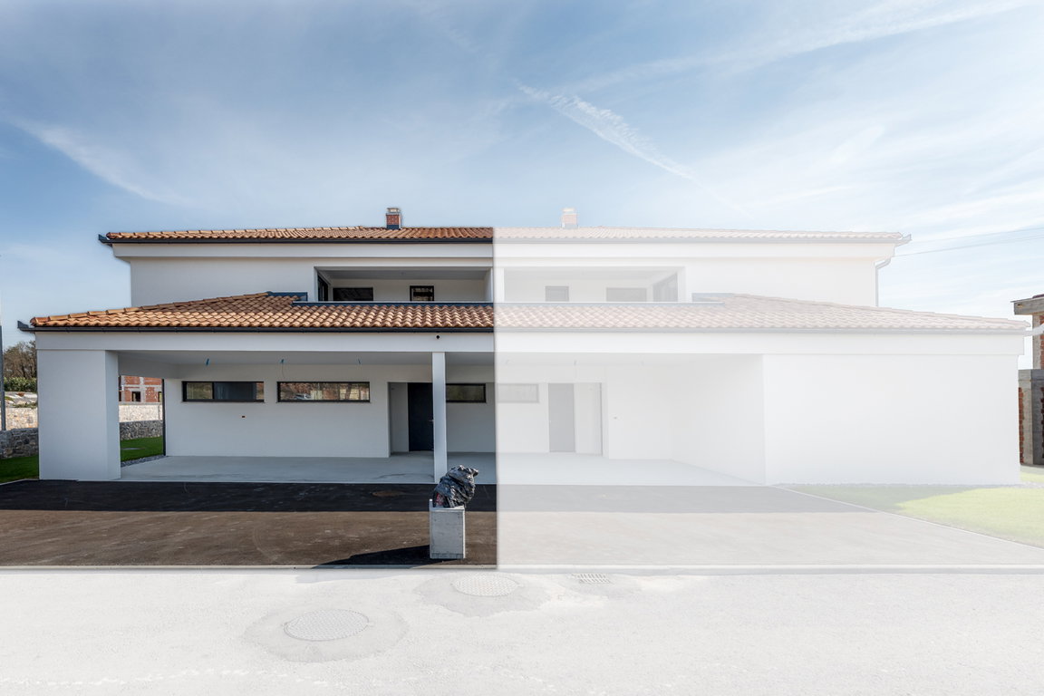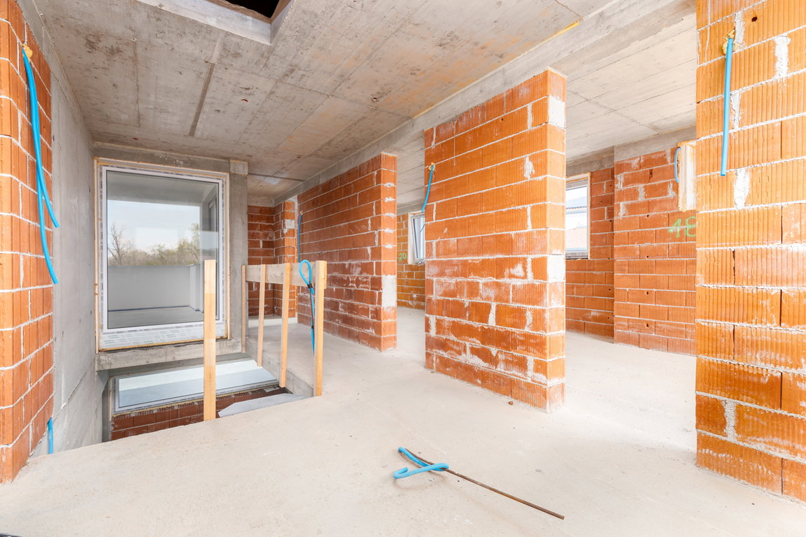 Gre za novogradnjo (P+1), ki je trenutno izvedena do 3. podaljšane gradbene faze, z dokončano zunanjo ureditvijo.To pomeni, da je osnovna struktura hiše že vzpostavljena – fasada, streha, okna, vhodna vrata in vsi zunanji priključki – vse je pripravljeno, da jo dokončate po svojih željah in okusu.