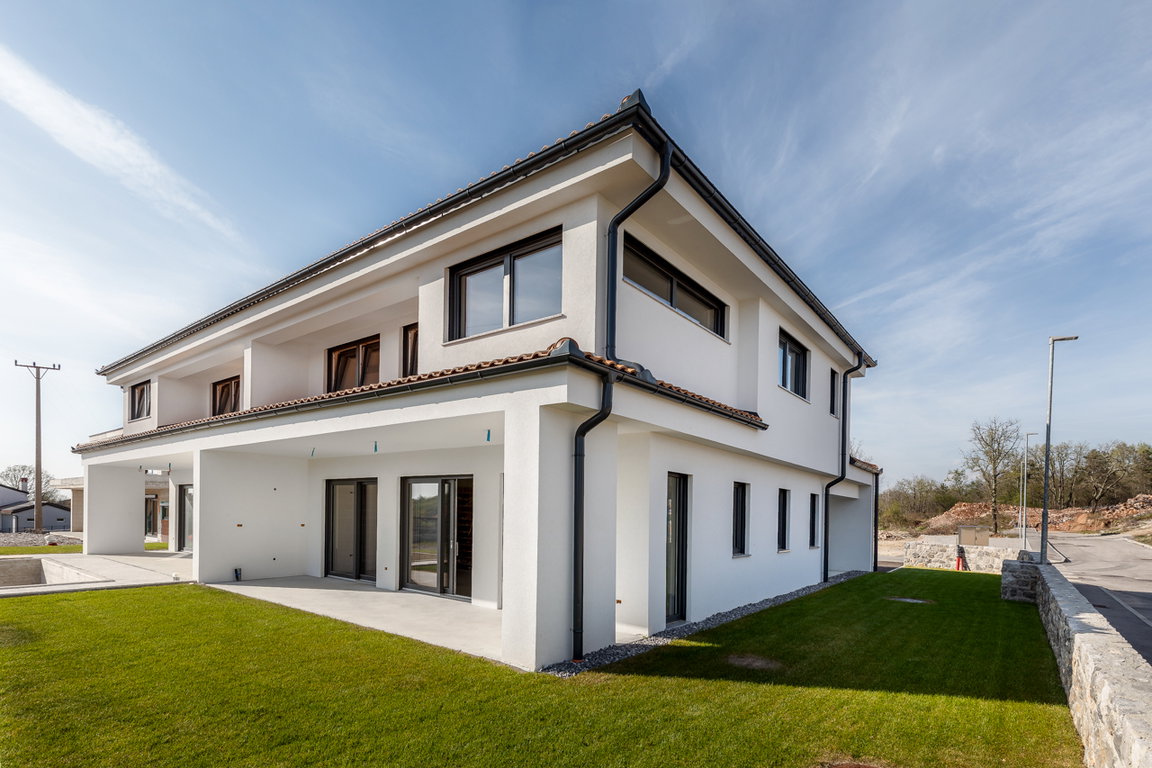 Na mirni, sončni lokaciji v novem naselju sodobnih hiš v Opatjem Selu pri Mirnu vas pričakuje vrhunsko zasnovana stanovanjska enota dvojčka, ki ponuja več kot le dom. Gre za premišljeno novogradnjo v dveh etažah (P+1), ki vas bo navdušila s svojo funkcionalno arhitekturo, kakovostnimi materiali in dovršenimi detajli.